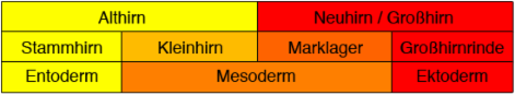 Die Zuordnung von Keimblättern zu Hirnteilen sieht folgen