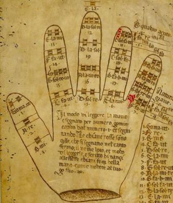 Anfang des 11. Jahrhunderts suchte ein italienischer Benediktinermönch namens Guido von Arezzo nach Möglichkeiten, um klösterlichen Chören Melodien und Harmonien zu vermitteln. Eine seiner Methoden bestand in einem mnemonischen Hilfsmittel, der sogenannten „Guidonischen Hand“.